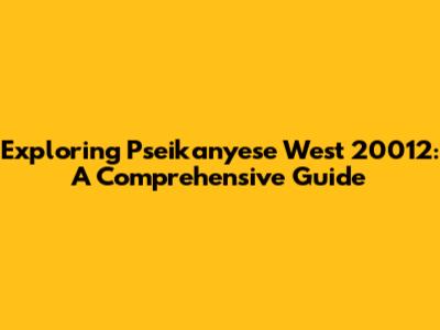 Exploring Pseikanyese West 20012: A Comprehensive Guide