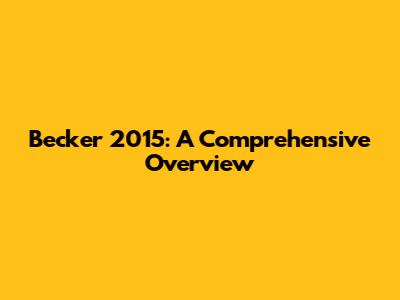 Becker 2015: A Comprehensive Overview