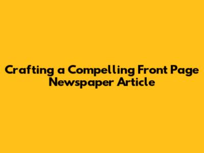 Crafting A Compelling Front Page Newspaper Article