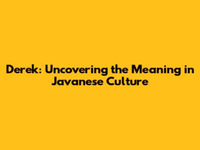 Derek: Uncovering The Meaning In Javanese Culture
