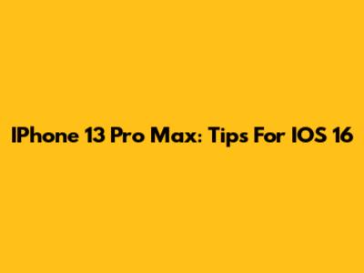 IPhone 13 Pro Max: Tips For IOS 16
