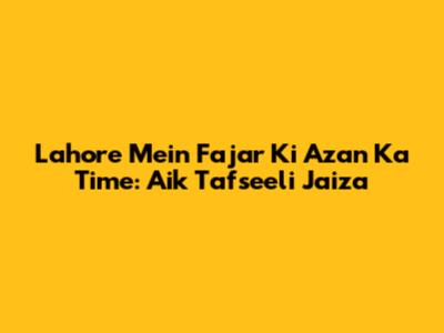 Lahore Mein Fajar Ki Azan Ka Time: Details