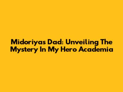 Midoriya's Dad: Unveiling The Mystery In My Hero Academia