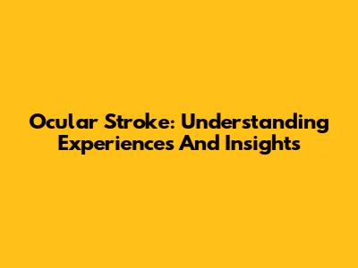 Ocular Stroke: Understanding Experiences And Insights