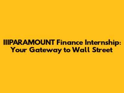 IIIPARAMOUNT Finance Internship: Your Gateway To Wall Street
