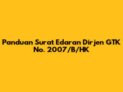Panduan Surat Edaran Dirjen GTK No. 2007/B/HK