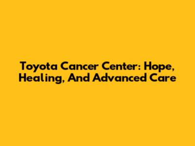 Toyota Cancer Center: Hope, Healing, And Advanced Care