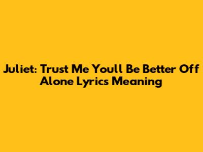 Hey guys! Ever heard that heartbreaking yet empowering song, "Trust Me You'll Be Better Off Alone" by Juliet? It's a real anthem for anyone who's been through a tough breakup or realized they deserve better. Let's dive deep into the lyrics and uncover the meaning behind this powerful track. We'll break it down line by line, explore the themes, and see why it resonates with so many people. So, grab your headphones, get comfy, and let's get started!