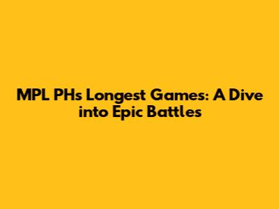 Decoding the Longest Games in MPL Philippines: What Makes Them Epic?