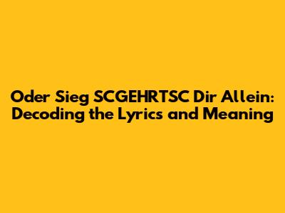 Have you ever stumbled upon a phrase or lyric that just sticks in your head, leaving you intrigued and wanting to know more? Today, we're diving deep into the enigmatic phrase "Oder Sieg SCGEHRTSC Dir Allein." This isn't your everyday saying; it's a unique combination of words that sparks curiosity and begs for understanding. Whether you've heard it in a song, seen it online, or simply encountered it in passing, this article is your ultimate guide to unraveling its meaning, origin, and significance.