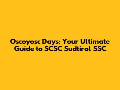Oscoyosc Days: Your Guide To SCSC Sudtirol SSC