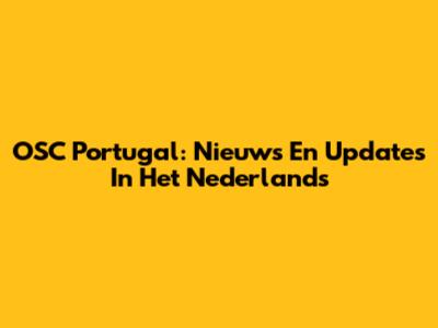 OSC Portugal: Nieuws En Updates In Het Nederlands