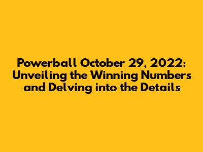 Hey there, Powerball enthusiasts! Let's rewind to October 29, 2022, a date etched in the minds of many hopeful players. We're diving deep into the Powerball results from that night, providing you with everything you need to know: the winning numbers, the payouts, and a bit of analysis to satisfy your curiosity. So, grab your lucky charms, and let's get started on this exciting journey of numbers and dreams! It's always fun to look back, and who knows, maybe the winning combination from that October night will inspire your future Powerball picks. Whether you played or not, it’s always fascinating to examine the results and the impact of the Powerball game.