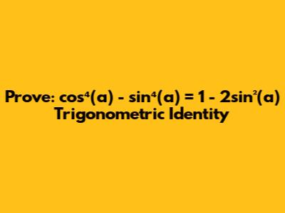 Prove: Cos⁴(a) - Sin⁴(a) = 1 - 2sin²(a) Trigonometric Identity