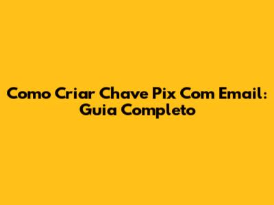 Como Criar Chave Pix Com Email: Guia Completo