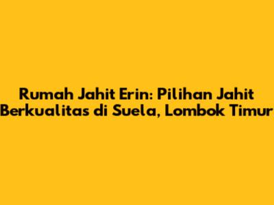 Hey guys! Apa kabar? Kali ini kita mau ngobrolin soal Rumah Jahit Erin, sebuah tempat yang lagi hits banget di Suela, Lombok Timur. Buat kalian yang lagi cari penjahit handal dengan hasil memuaskan, nih, Rumah Jahit Erin bisa jadi pilihan utama kamu. Lokasinya di Lombok Timur dengan kode pos 83657, tepatnya di Suela, bikin tempat ini gampang dijangkau sama warga sekitar dan bahkan dari daerah lain. Jadi, kalau kamu lagi pengen bikin baju custom, permak baju lama, atau butuh jahitan lain yang rapi dan presisi, Rumah Jahit Erin ini wajib banget kamu masukin list! Kita bakal kupas tuntas soal apa aja yang bikin Rumah Jahit Erin ini spesial, mulai dari kualitas jahitannya, pilihan bahan, sampai pelayanan yang ramah. So, stay tuned ya, biar gak ketinggalan info penting soal salah satu rumah jahit terbaik di Lombok Timur ini!