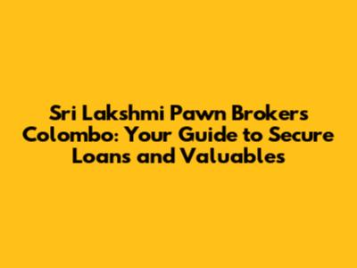 Hey there, folks! Are you looking for a reliable pawnbroker in Colombo? Well, look no further because we're diving deep into Sri Lakshmi Pawn Brokers Colombo, a well-known name in the city's financial landscape. We're going to explore what makes them tick, how they operate, the services they offer, and why they might be a good fit for your needs. Whether you're in a pinch and need a quick loan, or you're looking to sell some valuables, this guide will provide you with the essential info. Let's get started, shall we?