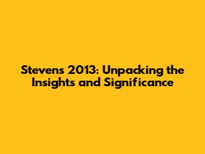 Stevens 2013: A Deep Dive Into Key Findings And Impact