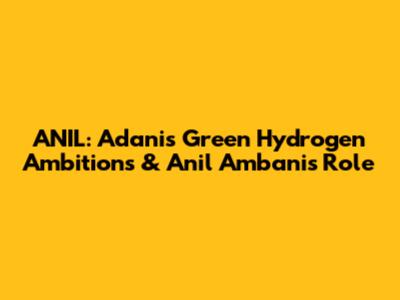 ANIL: Adani's Green Hydrogen Ambitions & Anil Ambani's Role