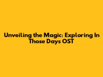 Unveiling The Magic: Exploring 'In Those Days' OST